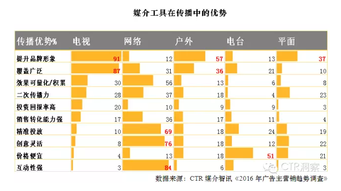 正所謂術(shù)業(yè)有專攻。不同類型的媒介在廣告主的眼中,有不同的優(yōu)勢和作用。