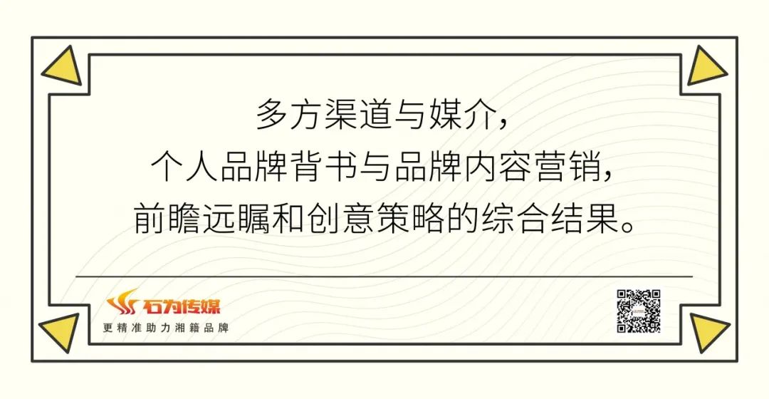 最終,一個品牌的最終成功,絕不是單單只做了一方的,而是多方渠道與媒介,個人品牌背書與品牌內容營銷,前瞻遠矚和創意策略的綜合結果。